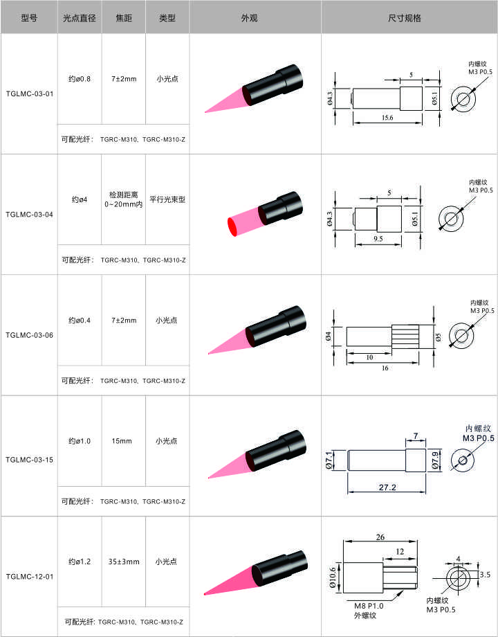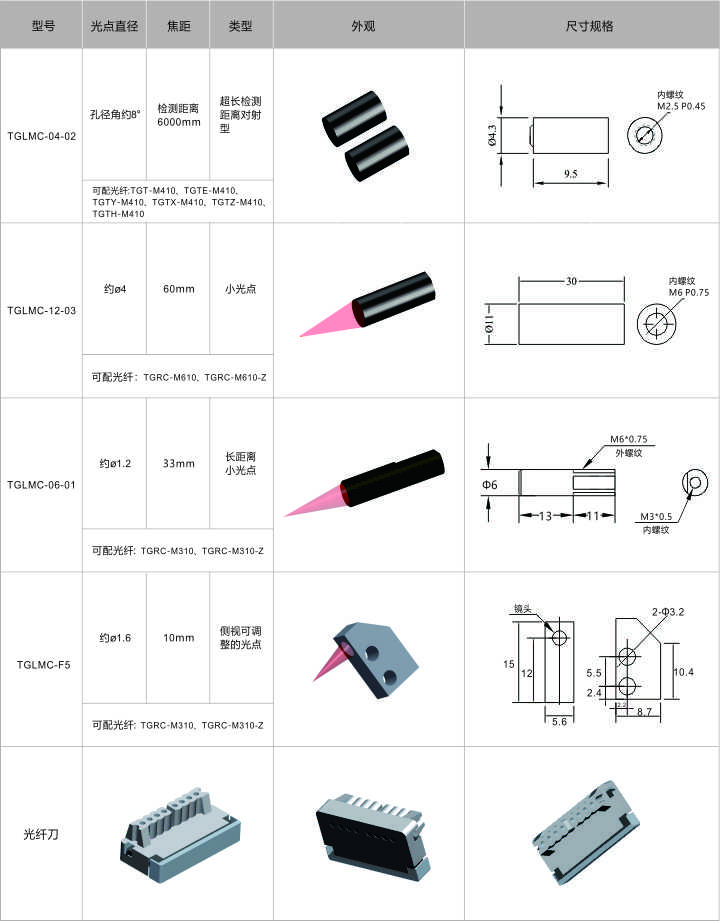 還有對射光纖用的TGLMC-04-02、和M6光纖用的TGLMC-12-03等