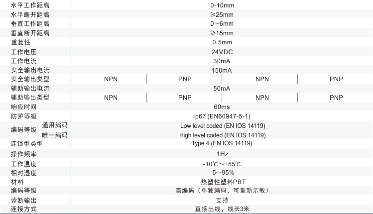 非接觸式安全門開關(guān)采用無線射頻識(shí)別應(yīng)用技術(shù),無論周圍發(fā)生何種變化,都要安全地進(jìn)行開關(guān),非接觸式安全開關(guān)工作穩(wěn)定可靠??梢愿鶕?jù)風(fēng)險(xiǎn)評(píng)估和機(jī)器設(shè)計(jì)的要求使用。