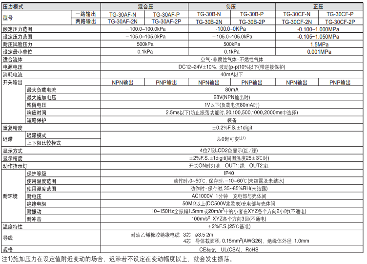 這個(gè)系列的壓力表可分為混合壓TG-30AF、正壓表TG-30CF、負(fù)壓表TG-30BF三個(gè)類型。