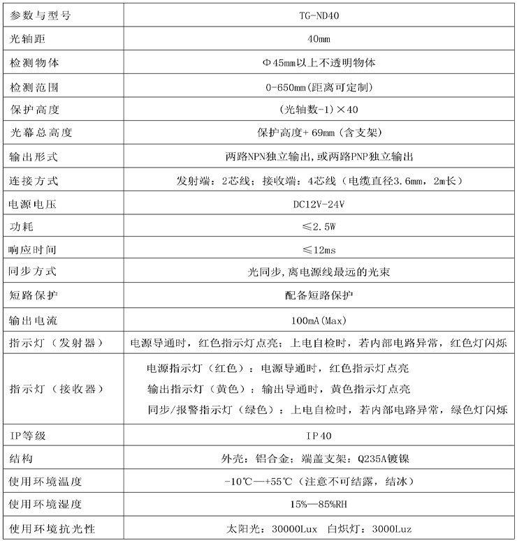 四級(jí)安全光幕超薄型TG-ND-40系列
