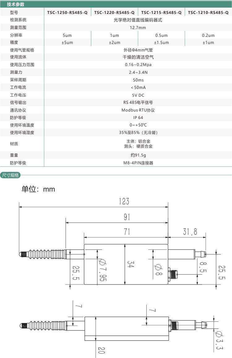 標準型接觸位移 氣動款TSC-12-Q系列